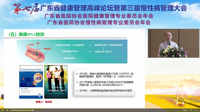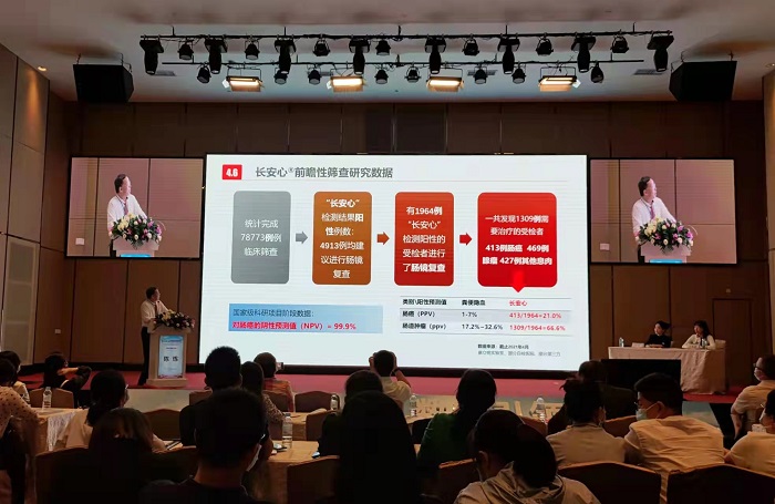 廣東省人民醫(yī)院協(xié)和醫(yī)療中心主任、廣東省醫(yī)院協(xié)會醫(yī)院健康管理專委會主任委員陳煉以《中國癌癥早篩的機(jī)遇與挑戰(zhàn)》為題作主題演講時,重點介紹了糞便SDC2基因甲基化PCR檢測對結(jié)直腸癌早期診斷的效果。