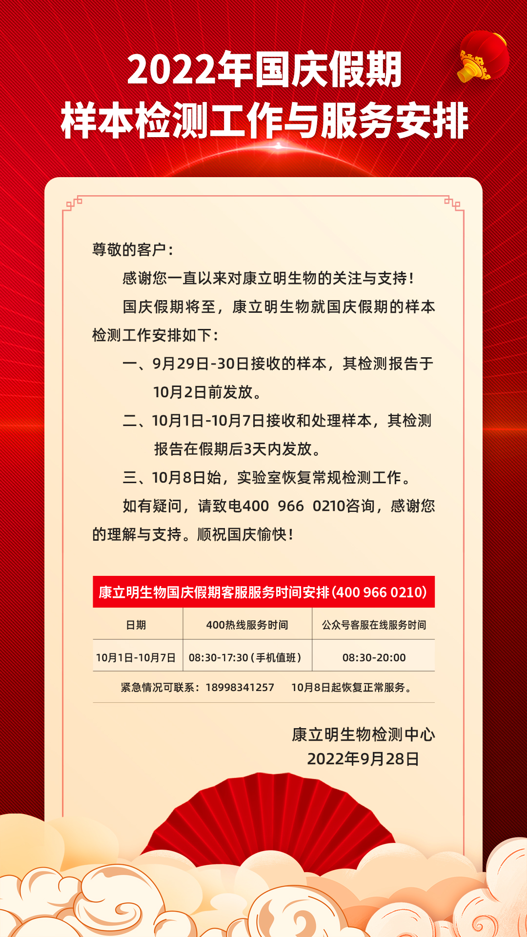 2022年國(guó)慶假期·樣本檢測(cè)工作與服務(wù)安排