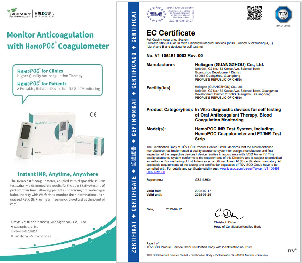 HemoPOC®凝血檢測(cè)儀是一款便攜式凝血檢測(cè)設(shè)備,與配套的檢測(cè)卡組成。HemoPOC®凝血檢測(cè)系統(tǒng),用于定量測(cè)定新鮮指尖毛細(xì)血管血的凝血酶原時(shí)間。該系統(tǒng)操作簡(jiǎn)單,滿足即時(shí)檢測(cè)及床旁檢測(cè)的應(yīng)用需求,增強(qiáng)抗凝管理和慢病管理的有效性。