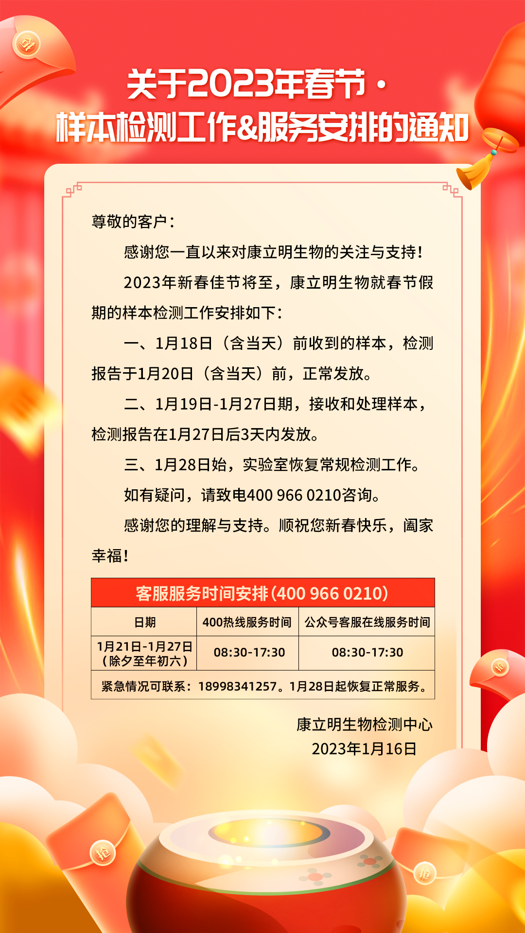 關于2023年春節(jié)·樣本檢測工作&服務安排的通知