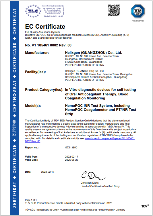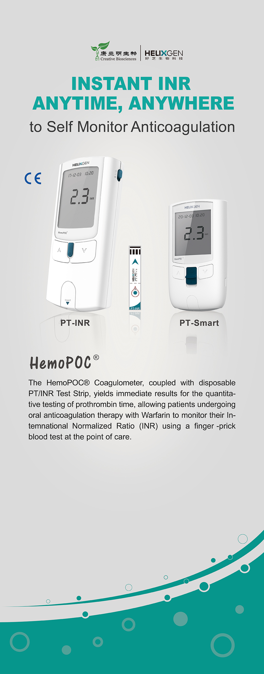 HemoPOC®凝血檢測儀是一款便攜式凝血檢測設(shè)備,與配套的檢測卡組成。HemoPOC®凝血檢測系統(tǒng),用于定量測定新鮮指尖毛細(xì)血管血的凝血酶原時間。該系統(tǒng)操作簡單,滿足即時檢測及床旁檢測的應(yīng)用需求,增強(qiáng)抗凝管理和慢病管理的有效性。