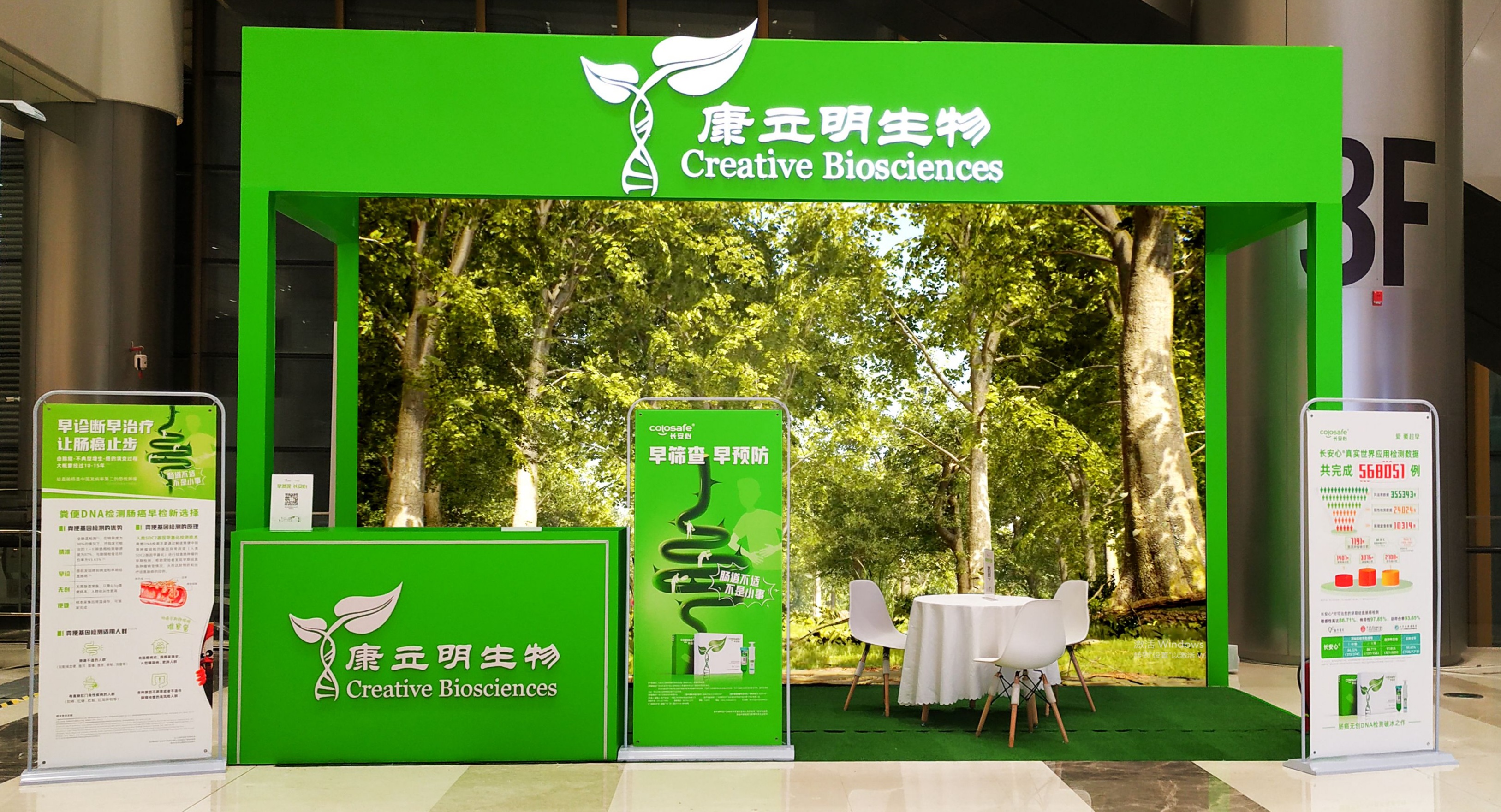 康立明生物攜長(zhǎng)安心®糞便DNA腸癌檢測(cè)產(chǎn)品參展??盗⒚魃镎刮灰源笞匀粸樵?,以代表生命和萬物生長(zhǎng)的綠色為抽象概念,構(gòu)建出一個(gè)Green Box,與現(xiàn)場(chǎng)展出的長(zhǎng)安心®小盒子,在形態(tài)到寓意上相呼應(yīng),吸引了眾多專家、嘉賓到康立明生物展位打卡、交流,探討長(zhǎng)安心®為健康管理系統(tǒng)提供的價(jià)值與成效。