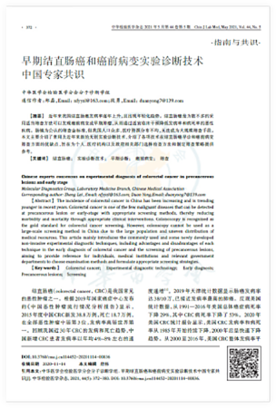 [2]中華檢驗醫(yī)學(xué)雜志2021年5月第44卷第5期《早期結(jié)直腸癌和癌前病變實驗診斷技術(shù)中國專家共識》